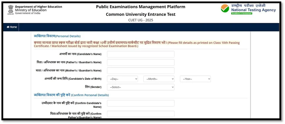 Step 2. Filling the online CUET 2026 application form