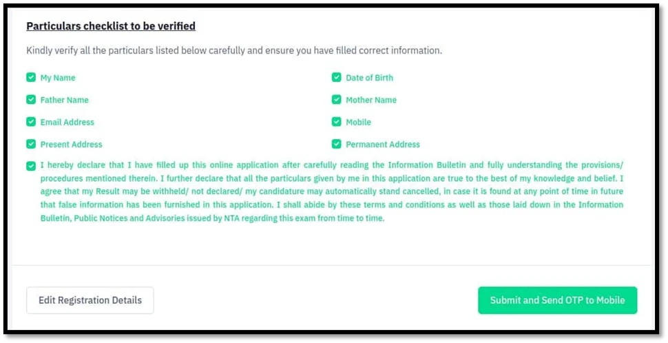 - Candidates must tick the box adjacent to the information and declaration to verify all the precise details after verifying the previously mentioned information.
